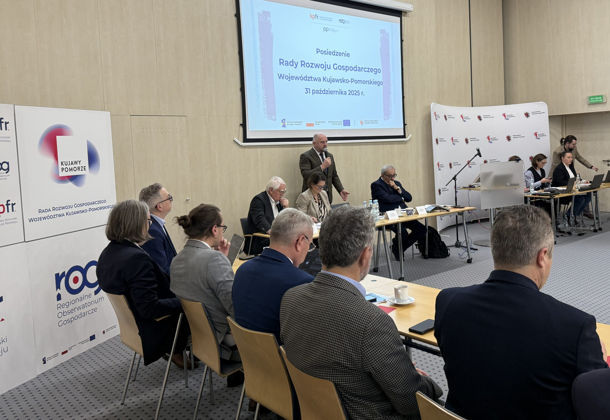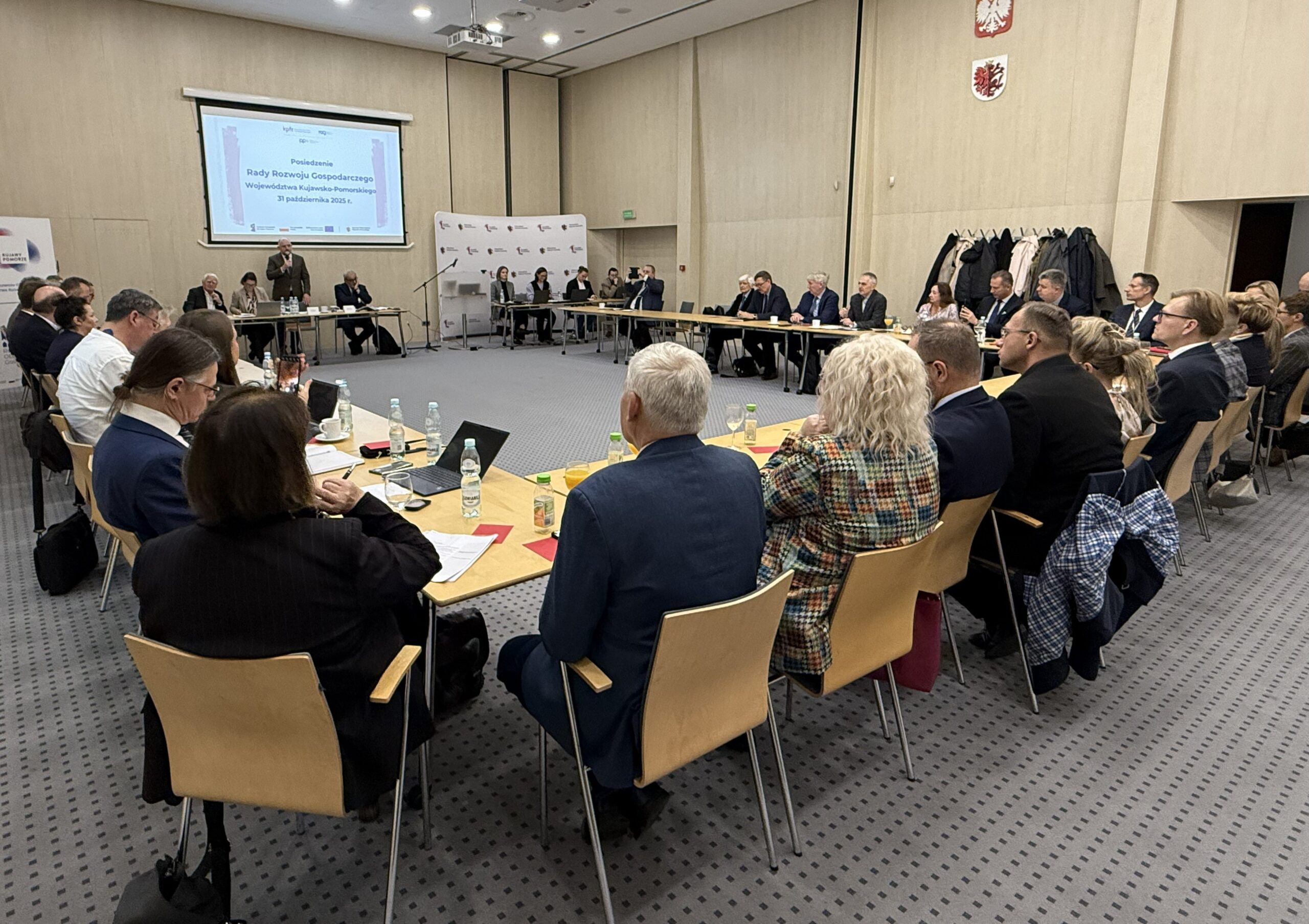 Dziś, 31 października 2025 r., w sali 200 Urzędu Marszałkowskiego Województwa Kujawsko-Pomorskiego w Toruniu odbyło się posiedzenie Rady Rozwoju Gospodarczego Województwa Kujawsko-Pomorskiego.